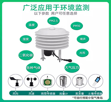 能夠?qū)︼L(fēng)向、風(fēng)速、氣溫、濕度、大氣壓、光照度、二氧化碳濃度、PM2.5、PM10、氧氣濃度、氨氣濃度、硫化氫濃度、噪聲等多種氣象要素進(jìn)行實(shí)時(shí)監(jiān)測。