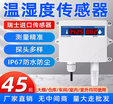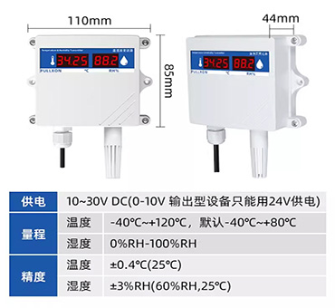該傳感器帶有數(shù)碼管顯示功能,可實時顯示當前溫濕度,采用壁掛防水殼,多用于室外及現(xiàn)場環(huán)境惡劣的場合。